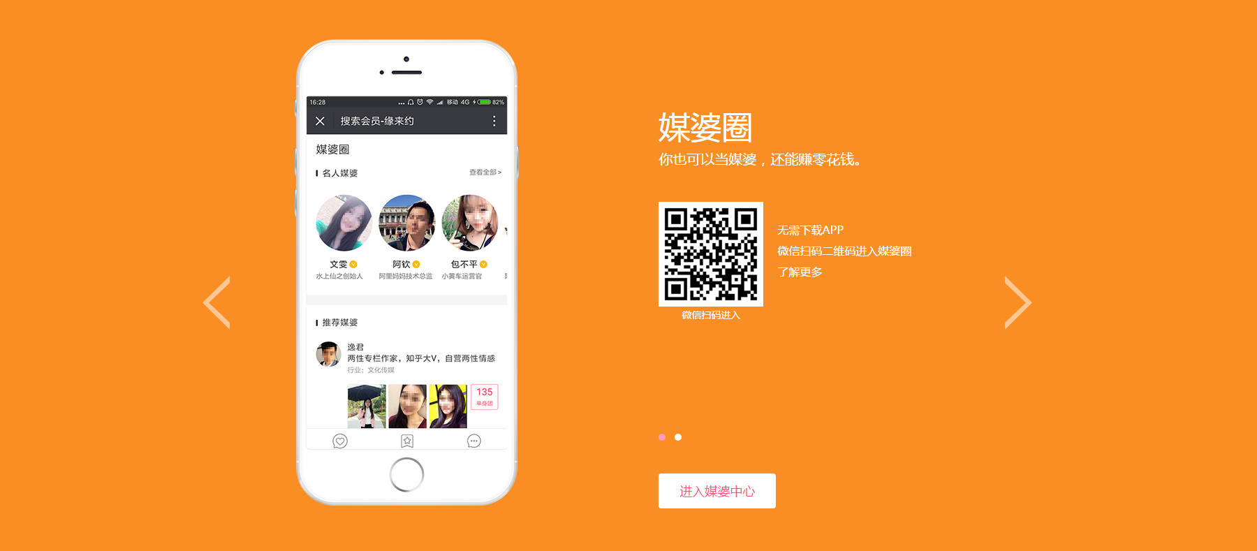 第二,用户资料的真实性可靠。通过媒婆人脉为会员做诚信的背书,通过人传人的方式使得用户的资料可信度更高。
